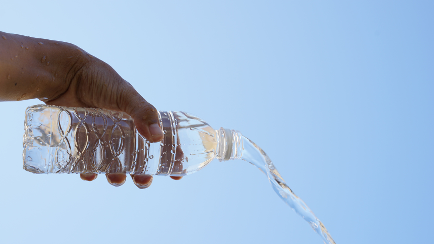 梅干しをかじり、ペットボトルで常に水分補給しながら