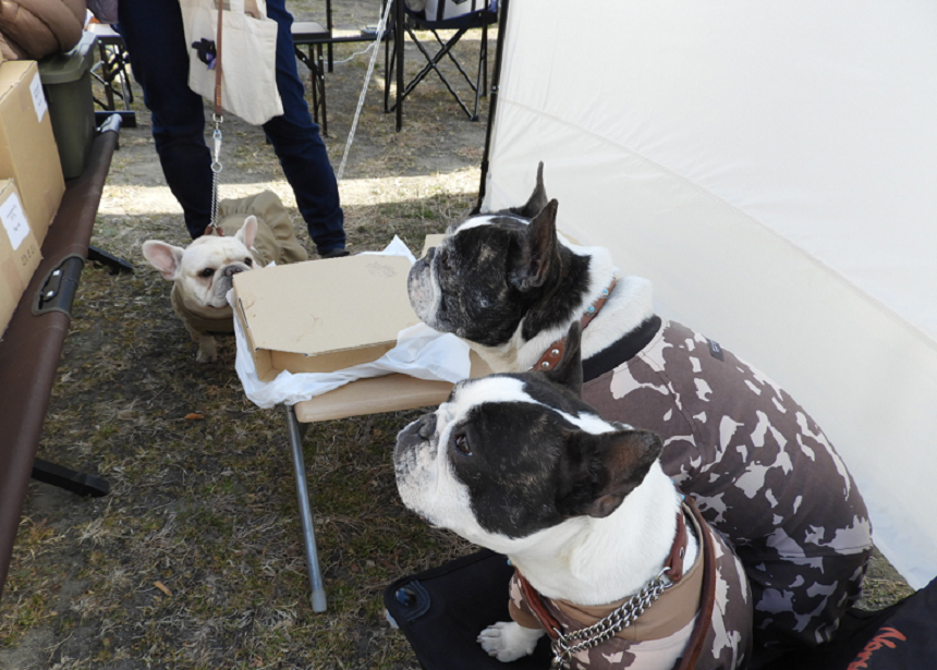 イベント 2022.03.19 by green wood 1 【2022年/春】BRUTTOMARKETイベントレポート 2022年3月6日(日)埼玉県加須市のむさしの村で開催された「BRUTTOMARKET」たくさんのフレンチブルドッグが集まった「大人も子どももペットも、だれもが楽しめるマルシェ」を、初出店のグリーンウッドがレポートします。 強風にもまけないフレブルパワー!!春の大嵐編 強風対策のアドバイス イベント当日を数日後に控えたある日。BRUTTOMARKET主催さんから出店者へ一斉ラインが。 なになに?強風対策のアドバイス?うんうん、天気予報で当日は風が強いってなってた。我が家のテントは大丈夫かしら?念には念をでパラコード・ペグ・ウエイトの基本セットに加えて風よけのために急いで幕を3枚‼購入。ギリッギリの配達日でした。それにしても運営さんのこの事前アナウンス!初めての出店で勝手のわからない出店者へのきめ細かいフォローがときめきます( ´∀`)bグッ! 前日の「お願い」投稿 いよいよ明日はイベント当日。準備も大詰め。いそいそと荷造りをしながらスマホをポチポチ。あっ、新しい投稿だ。「人気店舗の販売前に並ぶのは9時からで! 販売は10時から厳守!!」 えっ!?行列??そんなに人気店が出店するの!? まだまだイベント初心者の我がお店。ひとりもお客さんが来なかったらどーしよー(;´Д`)アウ…いつもよりちょっと気合を入れて、商品を多めの仕込んだ分、「売れなかったとき」を想像して眠りにつくのでした。。。 緊張!!の初出店 イベント当日。会場についてお隣さんにごあいさつ。はじめまして~(★´ー`)ノとお話ししながら、せっせと設営します。おとなりさんになったエンさん。刺繍リボンを使ってわんちゃん、ねこちゃんの首輪をハンドメイドされています🎀小さなかわいいお子さんとわが家のやんちゃ息子が意気投合で微笑ましかったです。出店者同士のこういう出会いも楽しみのひとつです。思ったより風も強くないし、快調なすべりだし。良い一日になりそうです。 ホントに大行列だ!!! 8時から準備をはじめて、1時間ほどたったとき。ふと顔をあげると長蛇の列が!!!これが「並ぶのは9時からで!!」のことか。お目当ての品をGet!のためにフレブルちゃんたちもお行儀よく並んでます。しかし、、、、ウチのお店は知名度もないしBRUTTOMARKET初参加の新参者。人気店の品をGet!したあと、みんな帰っちゃったらどーしよーと、ソワソワしていたら目の前にお客さまが!よかったよー(TдT)目にとめてくれるお客さまがいて。 わがお店の目玉は大きく3つ。・素材「そのまま」にこだわり、アレルギーリスクにも配慮した ラインナップの無添加おやつ・フレンチブルドッグと小型犬のハンドメイド服・羊毛フェルト作家の作るそっくりフェトたちなかでもみなさんの心をワシ掴みにしたのが、羊毛フェルトだったようです。遠目からみてもリアルな子たち。可愛らしい瞳で「私をつれて帰って~」と訴えていたのかどうか・・・新しいおうちへ連れてかえってもらいました。大事にかわいがってもらえたらいいなぁ(✿◡‿◡) 今回はハンドメイド服を作ってくれる作家さんも、フレブル大集合!!ということで会場へ駆けつけてくれました。そして、そして!なんとも幸運なことに、お洋服を気に入ってくださったお客さまのセミオーダーを受けてもらえることに。このコロナ禍で、なかなか対面でお客さまに商品の説明や作ったモノへの思いをお伝えすることが難しい時代です。でも、やっぱりこのコミュニケーションが楽しいんだ!直接、よろこんでくれる顔を見られるのってうれしい!!と、再確認しました。 だんだんと風が強く・・・ お昼もすぎ、お天気はかわらずいいけどだんだんと風が強くなってきました。おやつの試食のにおいが風にのって漂うのか・・・わんちゃんたちを引き寄せます(笑)グリーンウッドのおやつは・北海道産のエゾ鹿・鮭、静岡港揚げのまぐろとかつおと原料の明確なもの・アレルギーリスクに配慮したもの・手でちぎりやすい、お口の小さな仔にも与えやすいそんなことに、こだわったラインナップです。イベントでは実際にさわって、食べてみてもらえるようにしています。今回もたくさんのわんちゃんたちに食べてもらい、お買い上げをいただきました。ありがとうございます<(_ _*)> と、そうこうしているうちに「おやつのにおいを漂わせて~」なんて言っている場合じゃないくらいの強風が!! 羊毛フェルトのわんこたちがバタバタと倒れ、テーブルの上があっという間に砂ぼこりでいっぱいに(泣)まぁ、でもそんな強風などものともしないフレブルちゃんたちのパワーが会場内にあふれていました。ブヒッブヒッフゴゴ おわりに 今回、はじめてのBRUTTOMARKET出店。緊張しながらの参加だったけど、たくさんのかわいいフレブルちゃんたちにふにゃ~っと心いやされ、楽しくあっという間な一日でした。そんな中で心残りがふたつ。。。1つはゆっくりほかのお店を見られなかったこと。かわいい雑貨やおいしそうなキッチンカ
